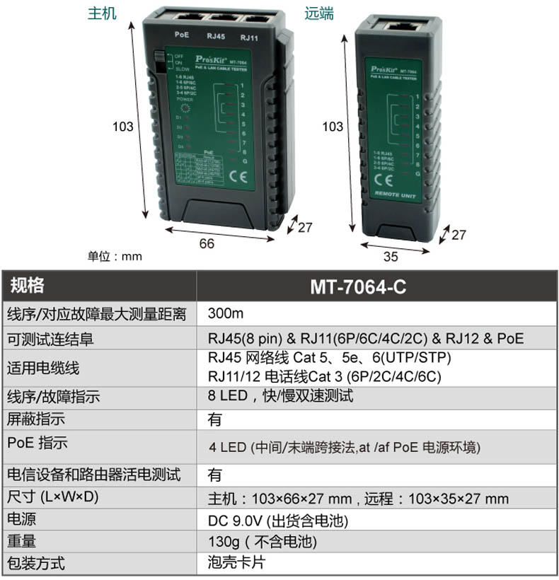 宝工Pro'sKit 迷你网络测试器(带电池),MT-7031 |