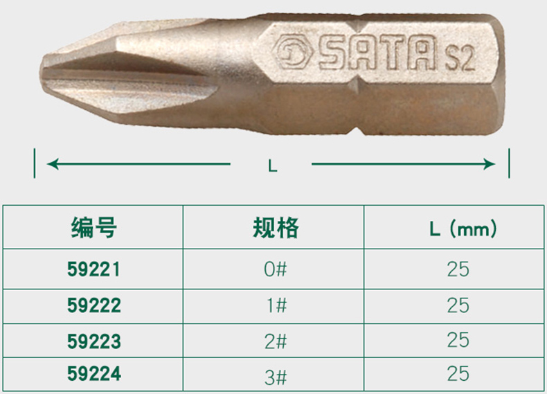 SATA/世达的螺丝批头世达双头旋具头,6.5mm-PH3,5件装6.3mm系列长65mm,59386