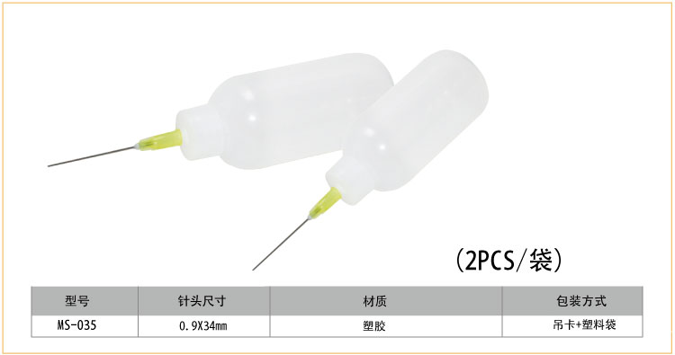艾逊订货号:D1036641 原始型号:宝工 Pro'skit针筒式点滴瓶,2个/1袋),MS-035 品牌:Proskit/宝工 品牌所属地:中国