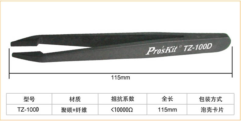 艾逊订货号:D1036702 原始型号:宝工 ESD特尖碳纤维镊子(130mm),TZ-300A 品牌:Proskit/宝工 品牌所属地:中国