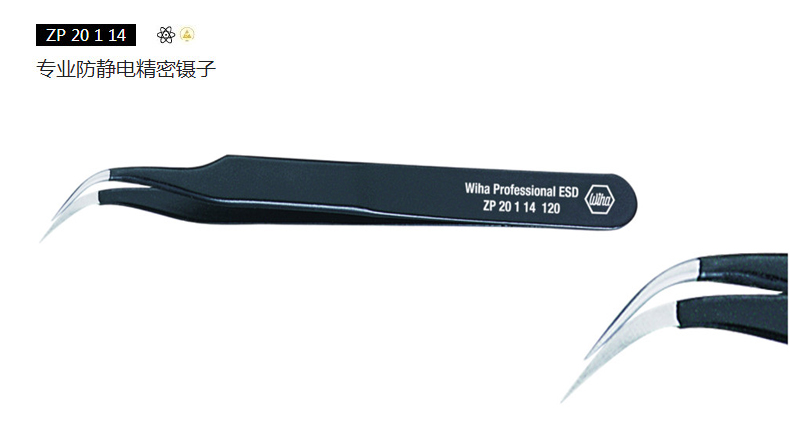 Wiha/威汉的防静电镊子SMD镊子,防静电表面贴装镊子长117mm,32344