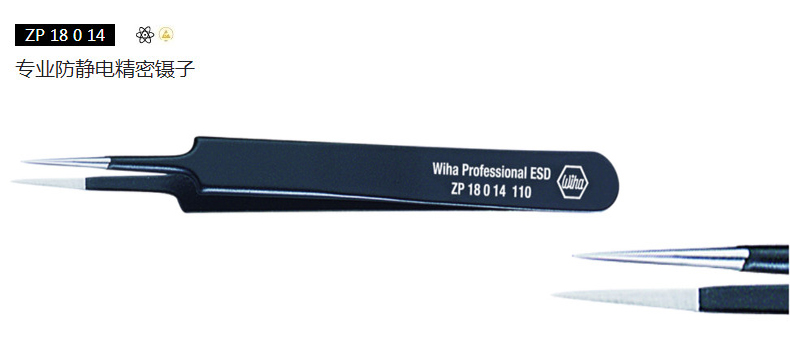 Wiha/威汉的防静电镊子威汉防静电镊子,光滑尖爪型长110mm,32334