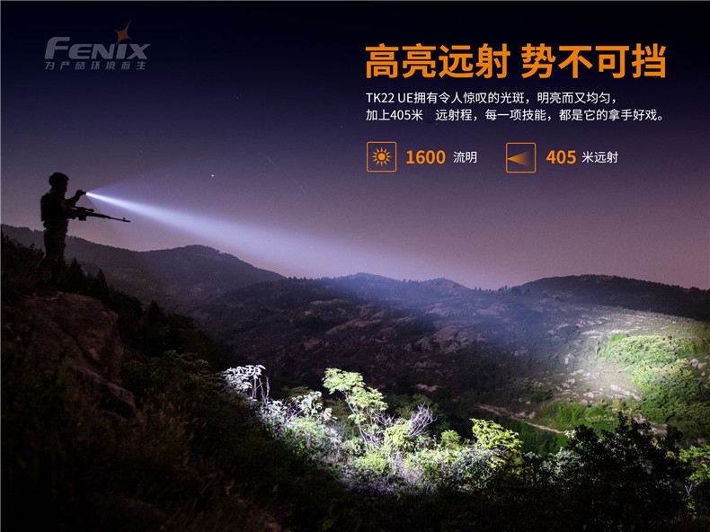 Fenix 远射手电,最高1500lm,HT18,含1节充电电池+充电线+18650电池架+红绿滤镜,单位:个 |