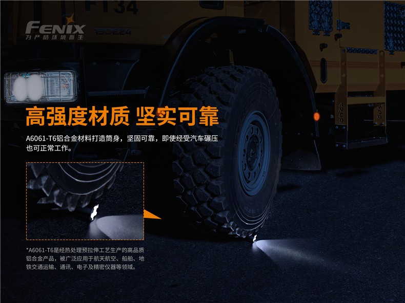 Fenix 便携LED手电,最高350lm,E20 V2.0,配2节AA电池,单位:个 |