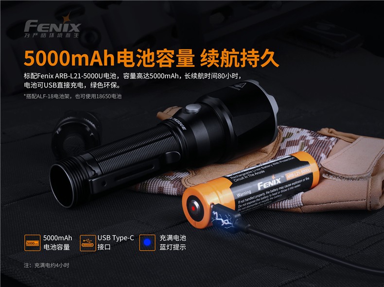 Fenix 超高亮手电,最高10000lm,LR35R,Type-c充电接头,含2节充电电池+type-C充电线,单位:个 |