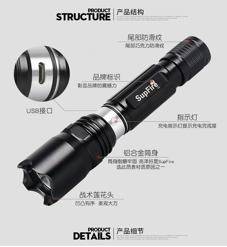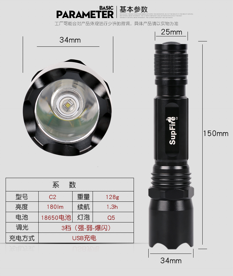 神火的便携式手电筒神火LED手电筒,C2含1个18650锂电池含1个USB充电线,单位:个