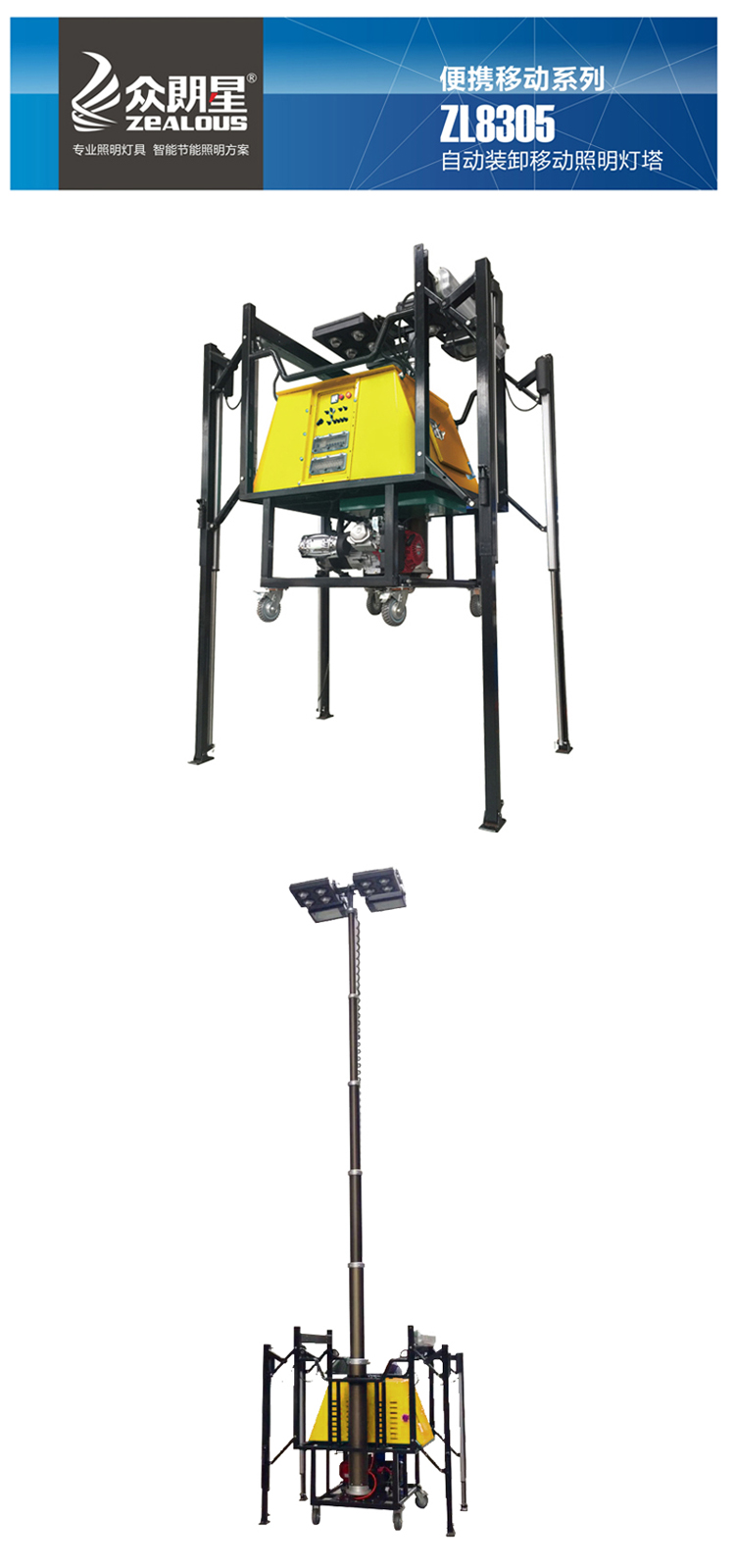 众朗星的便携式移动工作灯众朗星便携式移动工作灯,2×320W+2×1000W(HID),ZL8305,单位:套