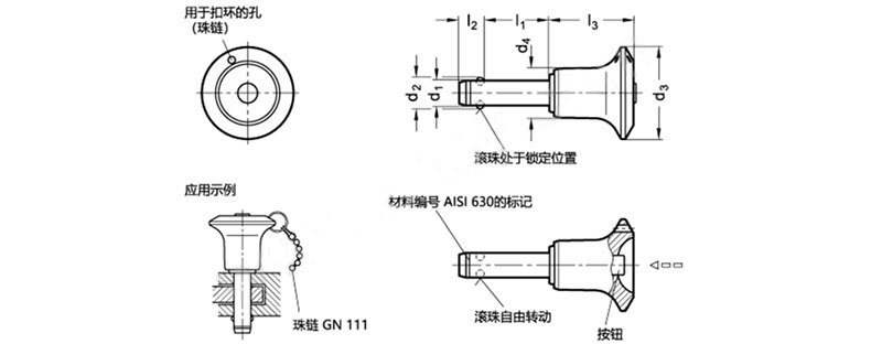 伊莉莎+冈特 不锈钢滚珠锁销,带不锈钢捏手,113.10-8-70 |
