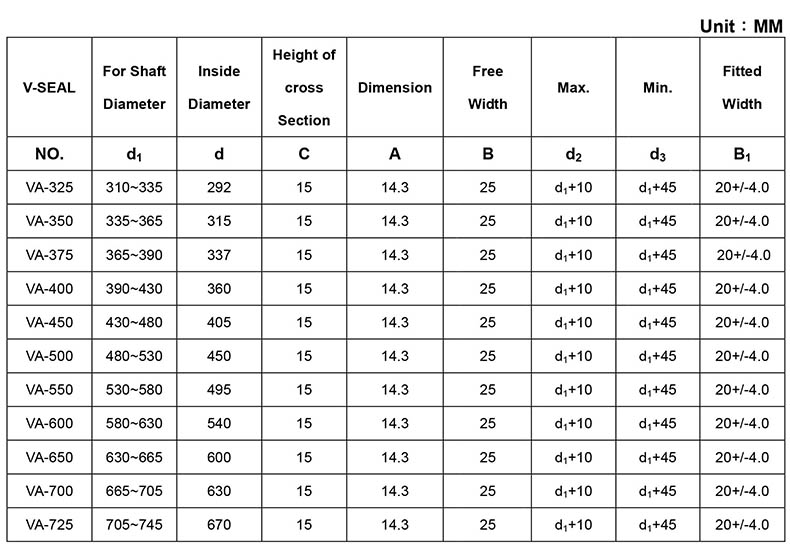 茂顺/NAK NBR丁腈橡胶V型旋转水封,VA-375(VD375A) 337*367*25 |