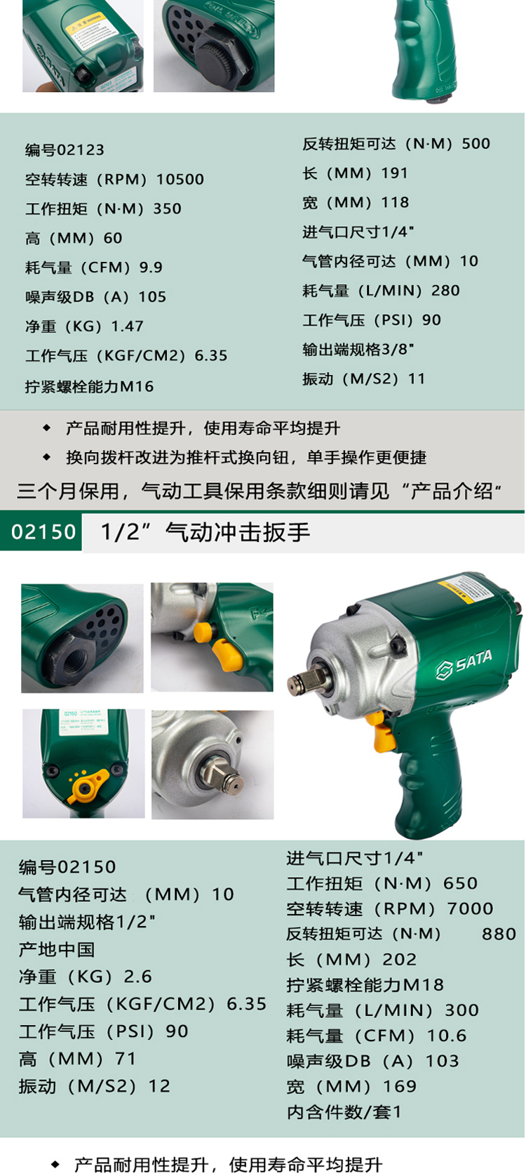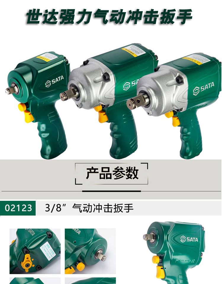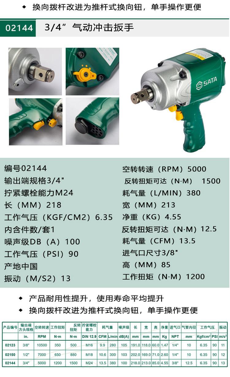 世达SATA 专业级气动冲击扳手,3/4"方头1220N.m进气口尺寸3/8",02145 |
