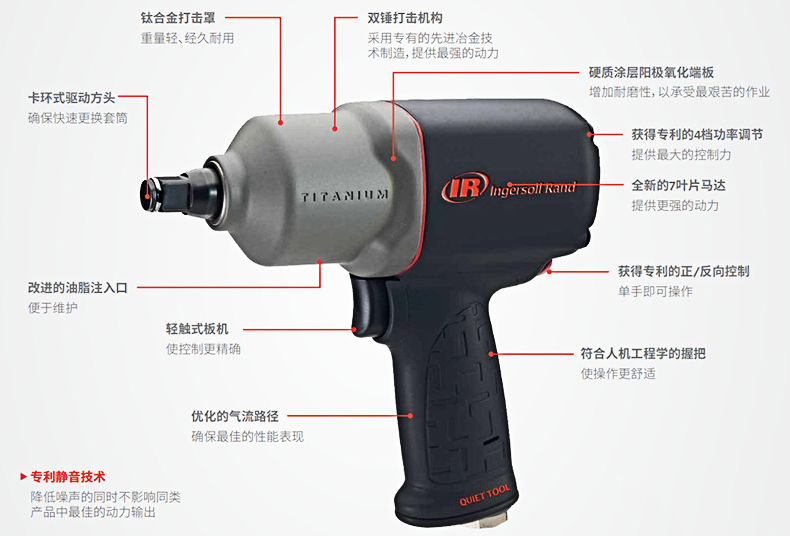 艾逊订货号:D1039276 原始型号:IR英格索兰1/2"工业级气动冲击扳手,68-746Nm,AW35QMX 品牌:Ingersoll Rand/英格索兰 品牌所属地:中国