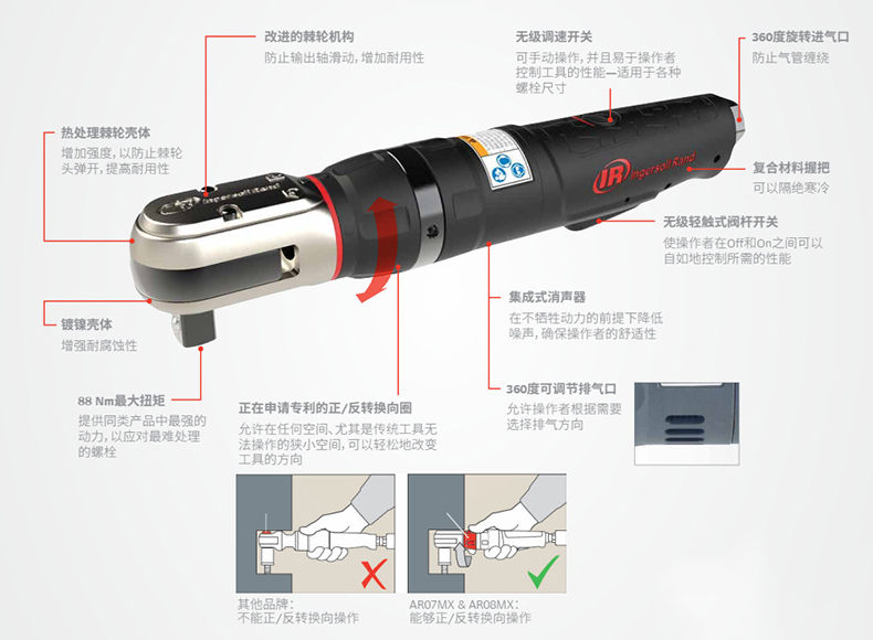 Ingersoll Rand/英格索兰的气动扳手IR英格索兰1/2"工业级气动棘轮扳手,88Nm,AR08MX