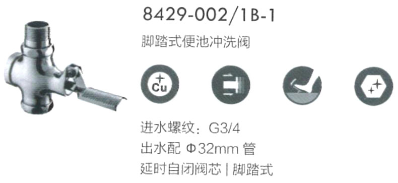 九牧 按键式延时自闭蹲便器冲洗阀,进水口外螺纹G3/4B,8255-002/1B-1 |