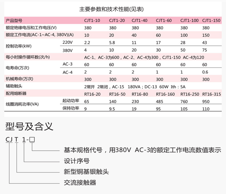 正泰CHINT CJT1交流线圈接触器,CJT1-60A AC220V |