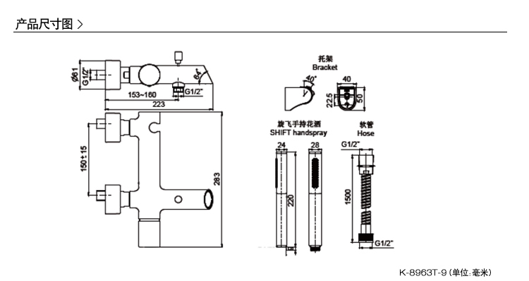 科勒 艾非挂墙式花洒龙头,K-97368T-4-TT |