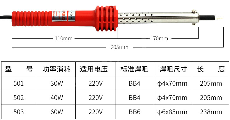 白光HAKKO 工业外热式电烙铁,60W,503,电焊笔 手持式电烙铁 环保电烙铁 长寿命电烙铁 |