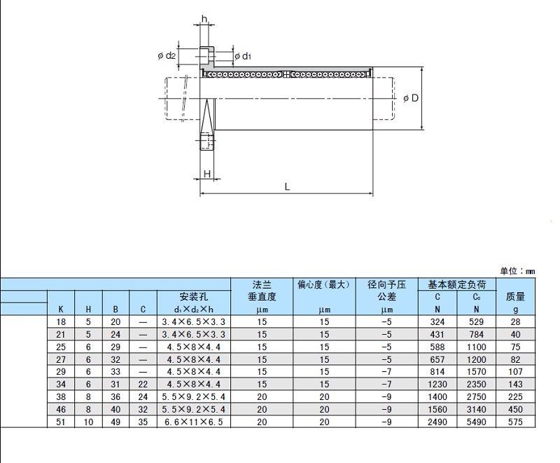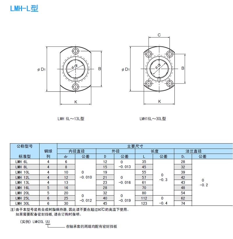 THK的直线轴承THK直线轴承,圆形切角长型,LMH6L