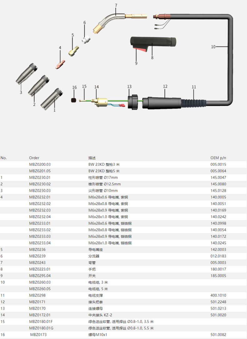 艾逊订货号:D1041059 原始型号:黑狼 宾采尔式23KD风冷气保焊枪 暂载率60% 焊丝直径0.6-1.0mm 25平方3米线缆 品牌:黑狼 品牌所属地:中国