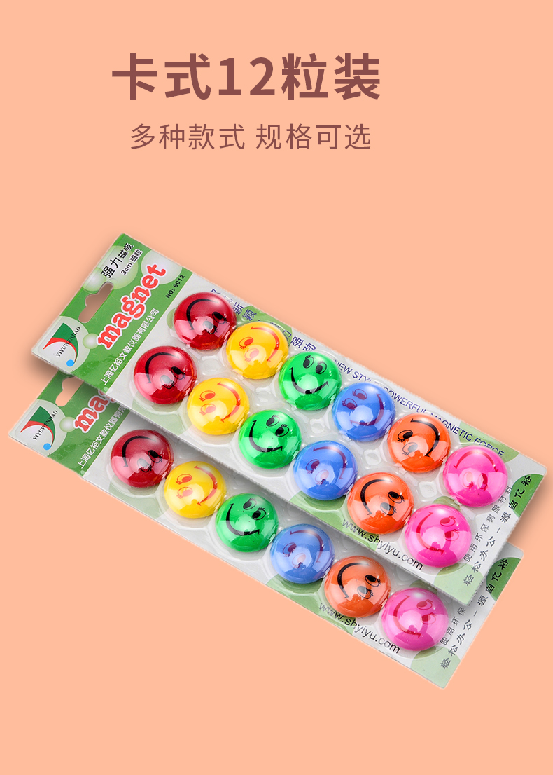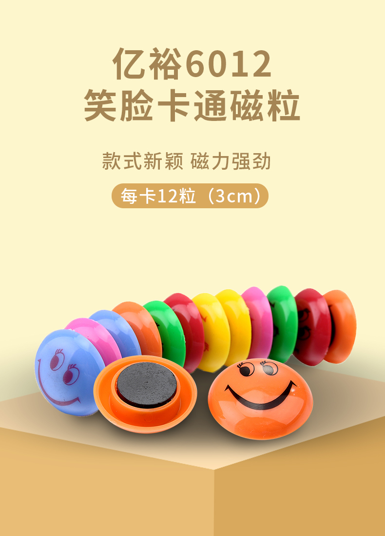 艾逊订货号:K1003918 原始型号:亿裕 6012 笑脸卡通磁粒 3cm 彩色 品牌:YIYU/亿裕 品牌所属地:
