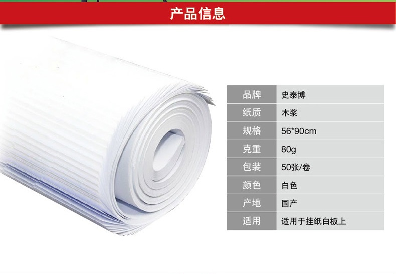 staples/史泰博的白板史泰博白板纸,(50张/包)无孔56*90cm白色书写、展示单位:包