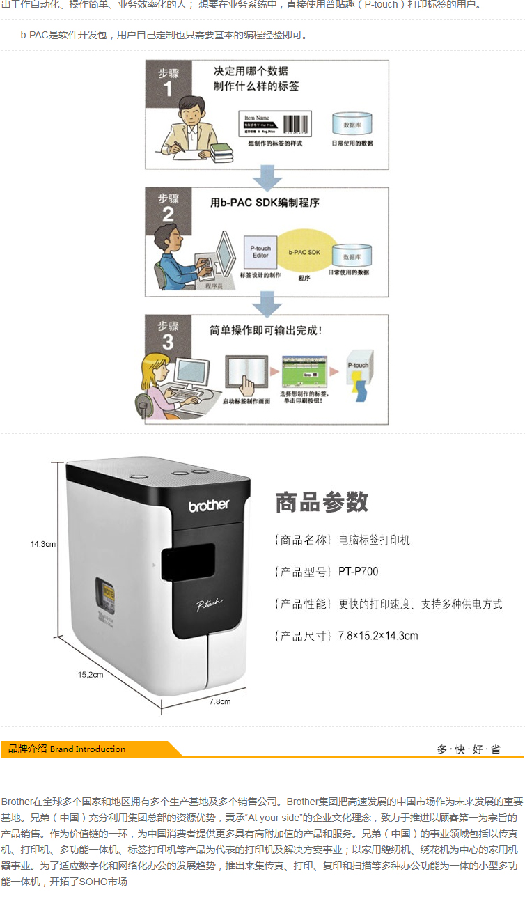 艾逊订货号:J1022463 原始型号:兄弟 PT-P700 品牌:BROTHER/兄弟 品牌所属地: