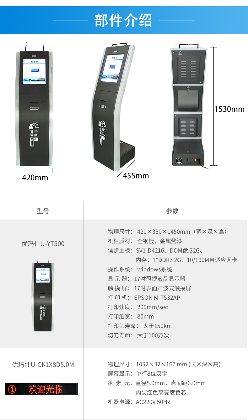 优玛仕 排队叫号机,(支持17个窗口)U-YT500-17 |