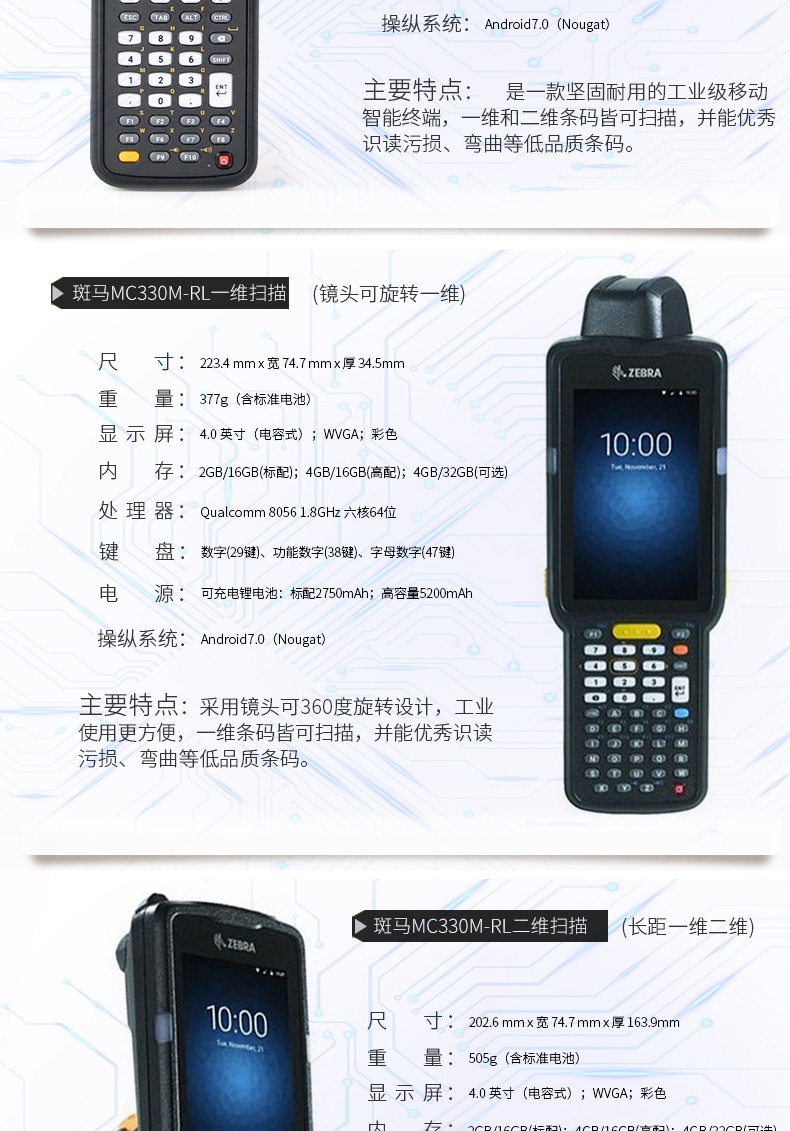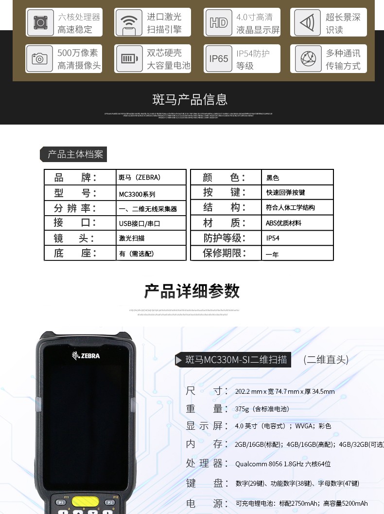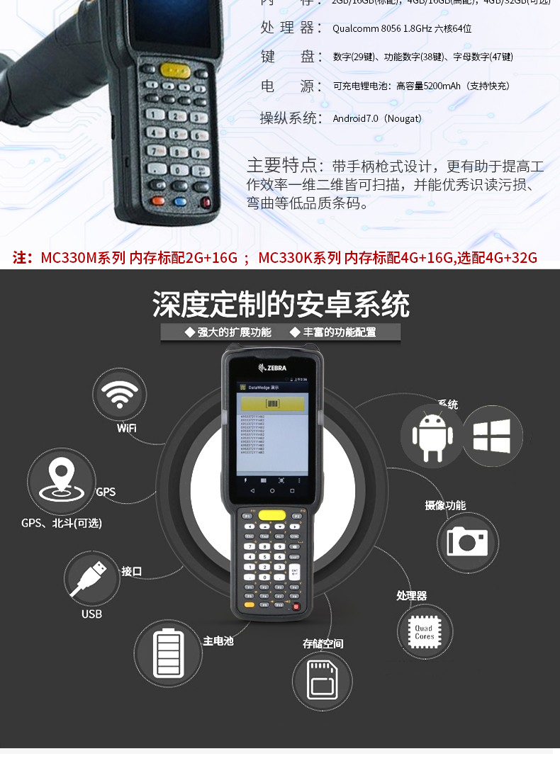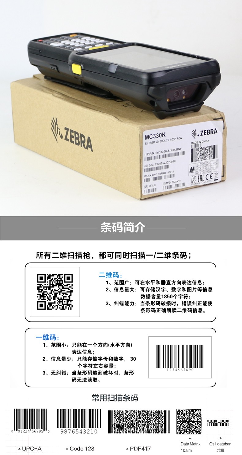艾逊订货号:K1006160 原始型号:斑马 MC330M-GI3HA2RW 品牌:Zebra/斑马 品牌所属地: