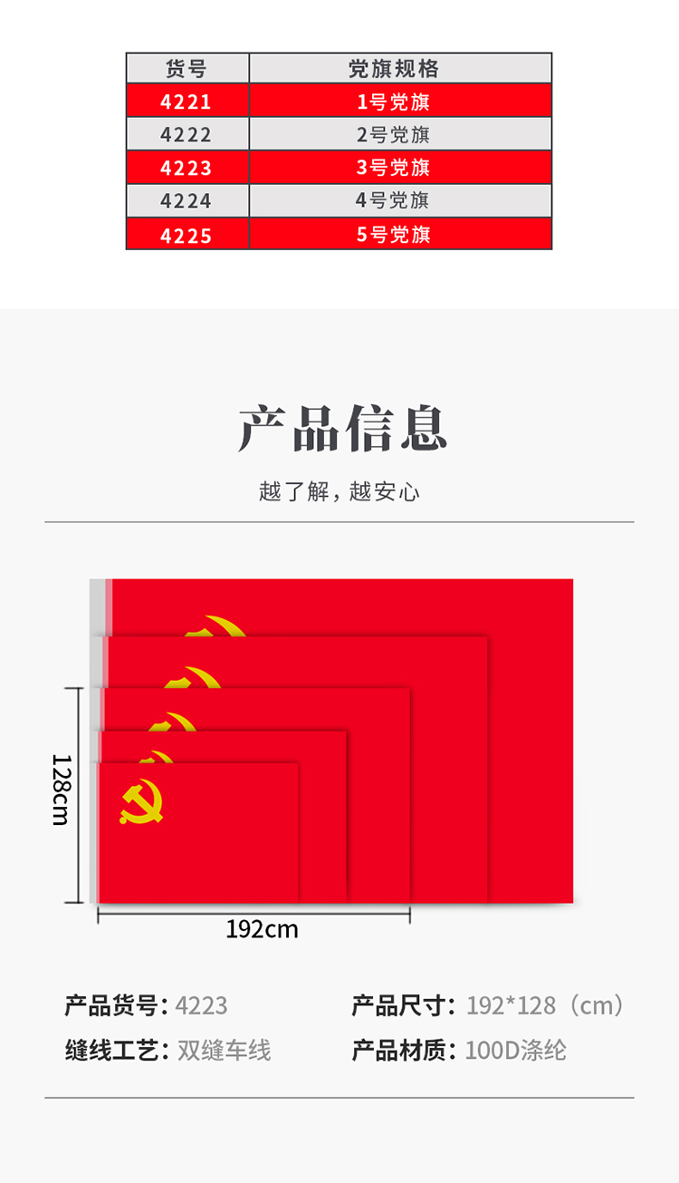 deli/得力的其他办公用品得力4222-2号党旗,240*160cm(单位:面)红