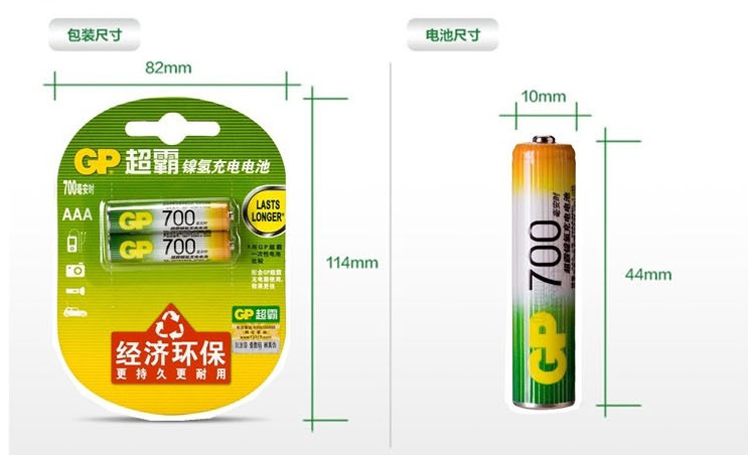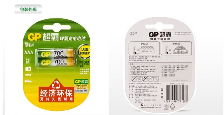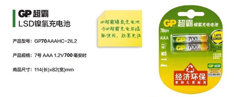 GP/超霸的电池超霸镍氢充电电池,70AAAH-L2(GP70AAAHC-2IL2)单位:卡