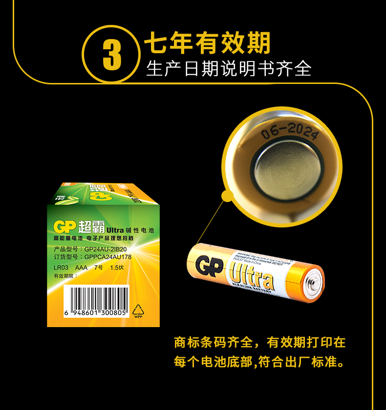 GP/超霸的电池超霸碱性电池,GP24AU-2IB204节/卡单位:卡
