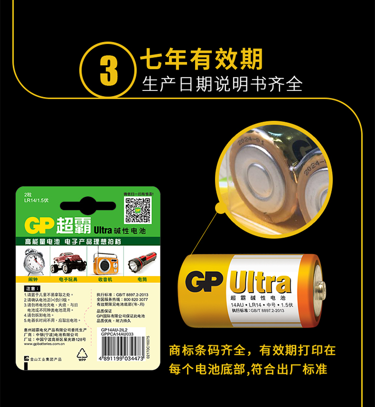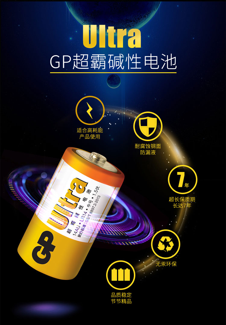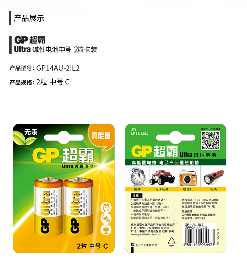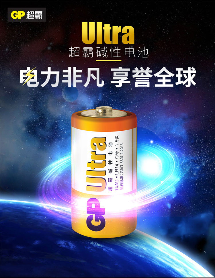 GP/超霸的电池超霸碱性电池,14AU-2IL2,中号2节卡装单位:卡