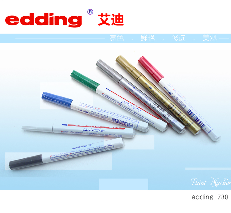 艾迪 记号笔,油性记号笔,耐高温300度 线幅1mm-2mm金色 单位:支 |
