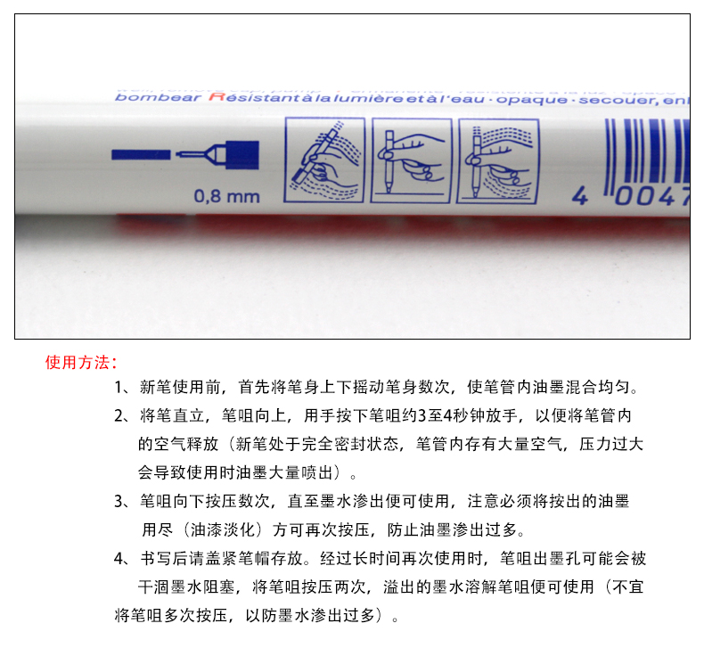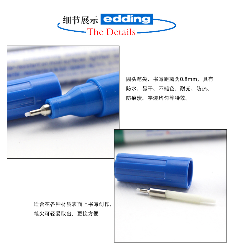 艾迪 记号笔,油性记号笔,耐高温300度 线幅0.8mm 银色 单位:支 |