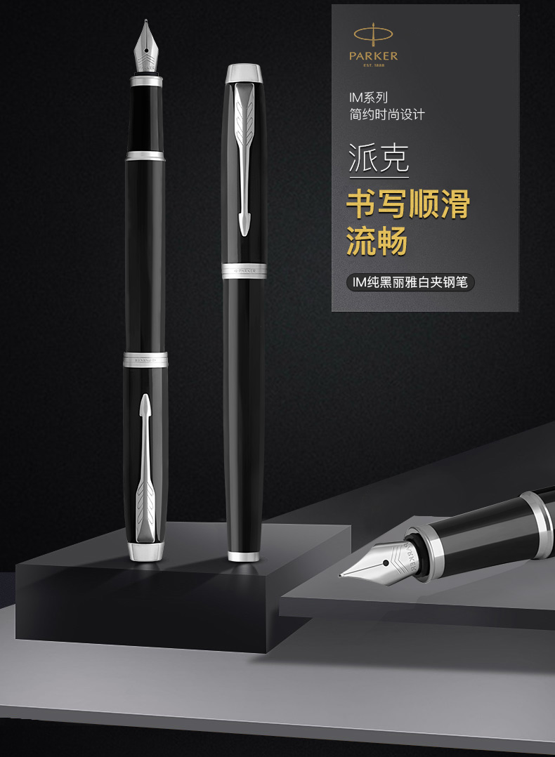 Parker/派克的笔类派克笔,派克IM纯黑丽雅黑白夹墨水笔