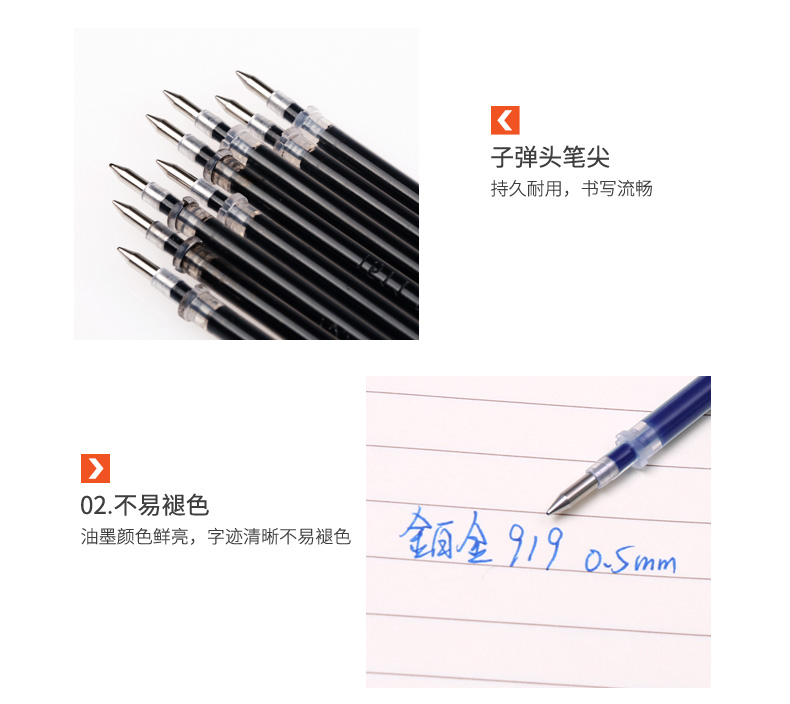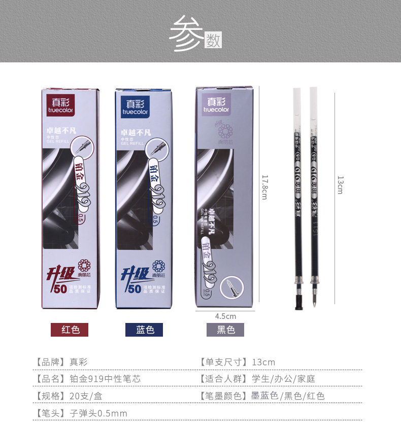真彩 铂金中性笔替芯,919 黑色,20支/盒 单位:盒(替代:EDG489) |