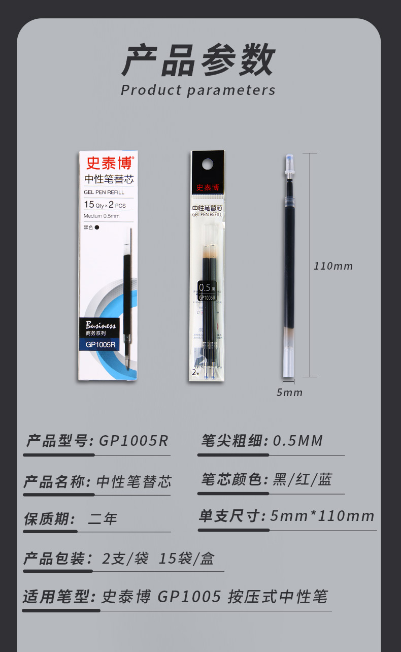 史泰博 按压式中性笔, 0.5 黑色 GP1005,12支/盒 单位:盒(替代:RVX208) |