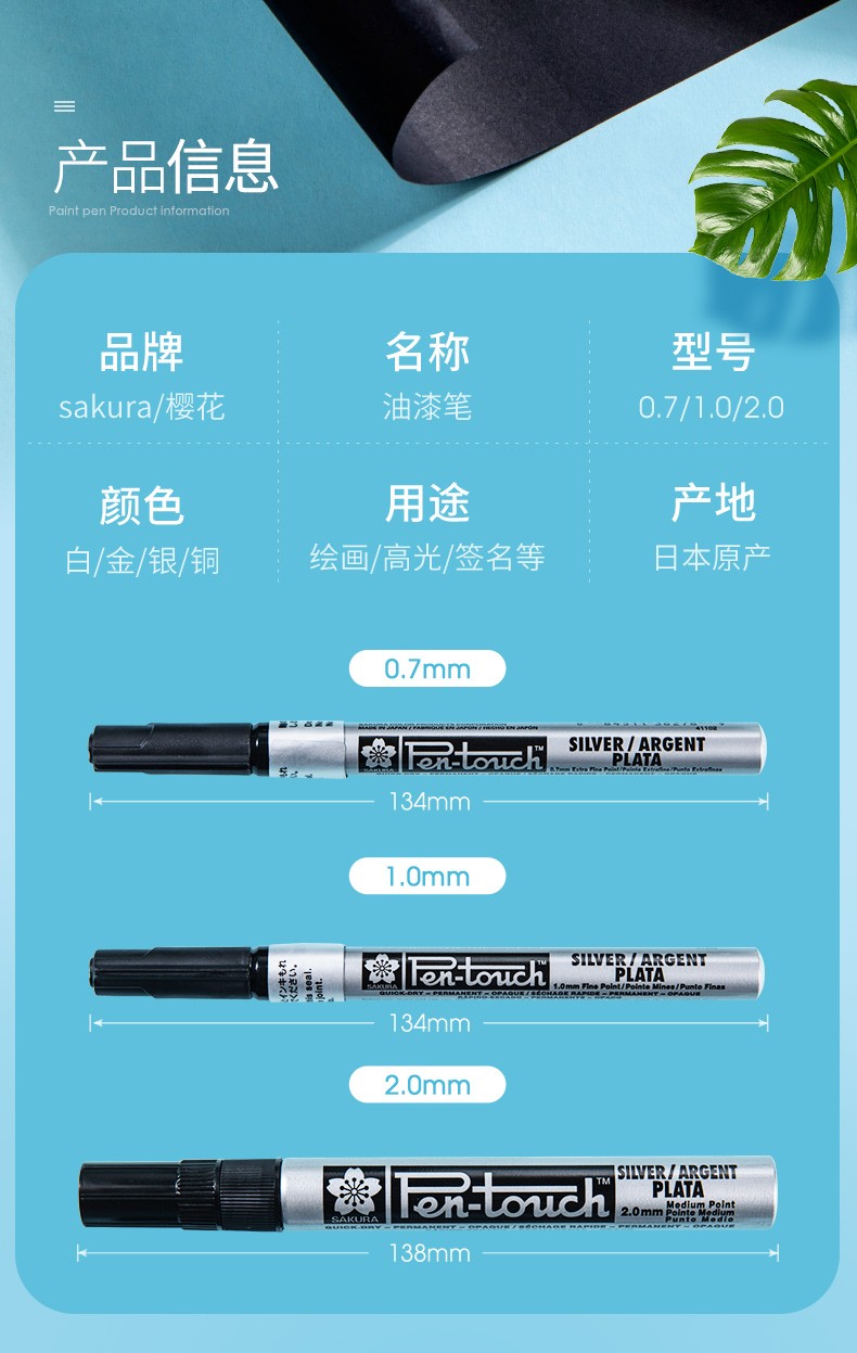 日本樱花 记号笔,油性记号笔,线幅1mm 银色 单支 |