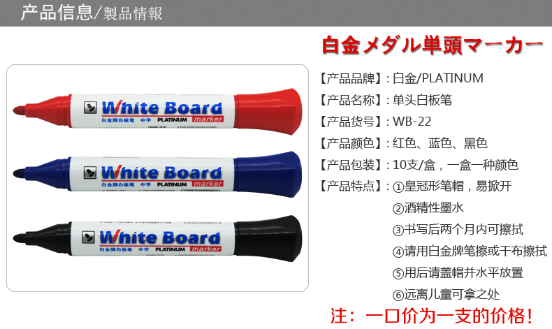 白金的笔类白金白板笔,红色WB-22,10支/盒单位:盒(替代:ECU907)