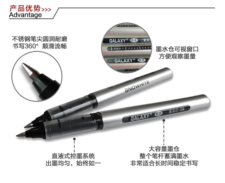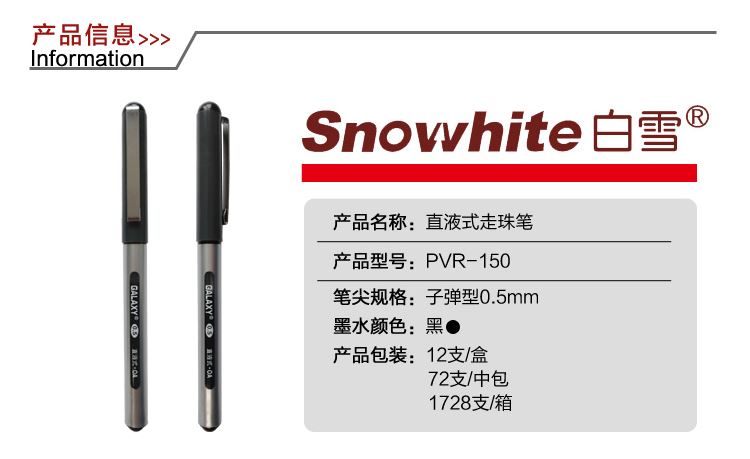 SNOWHITE/白雪的笔类白雪直液式走珠笔,PVR150子弹型0.5黑色(支)
