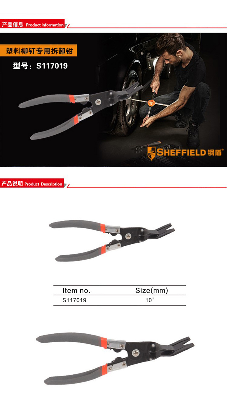 艾逊订货号:D1042061 原始型号:塑料铆钉拆卸钳,S117019 品牌:SHEFFIELD/钢盾 品牌所属地: