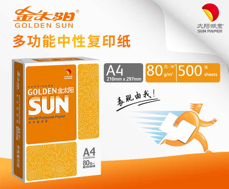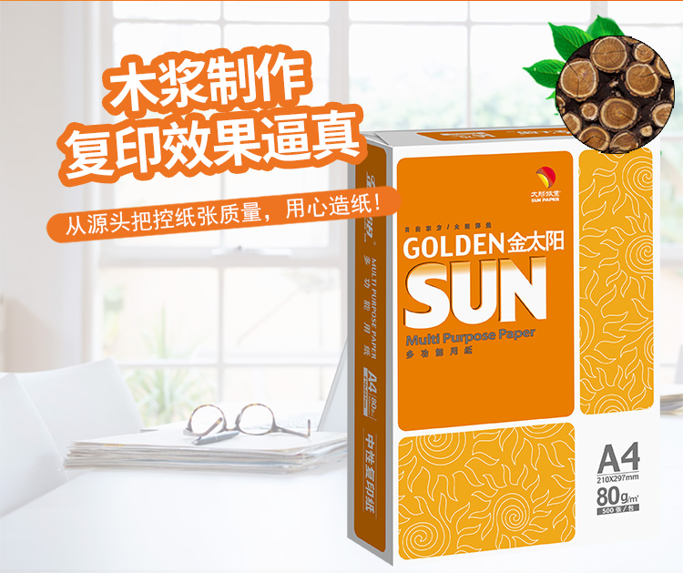 金太阳(绿)多功能复印纸,高白 A4 70G 5包/箱 单位:包(下单请按照8的倍数 8包/箱) |