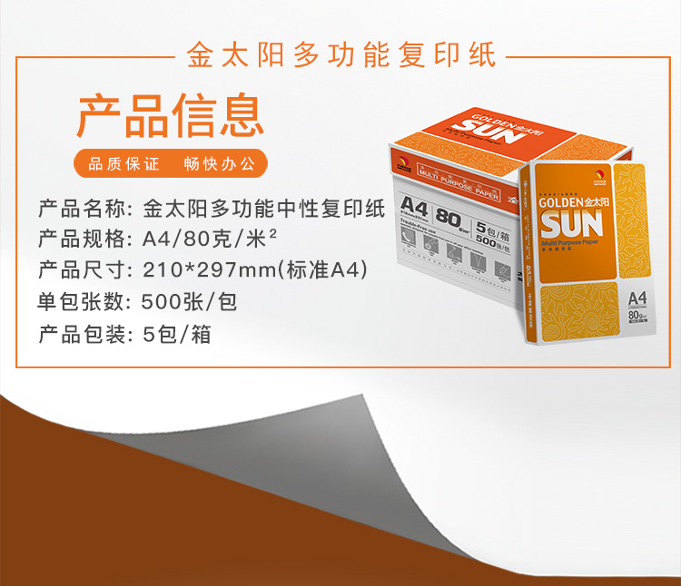 金太阳(绿)多功能复印纸,高白 A4 80G 5包/箱 单位:包 |