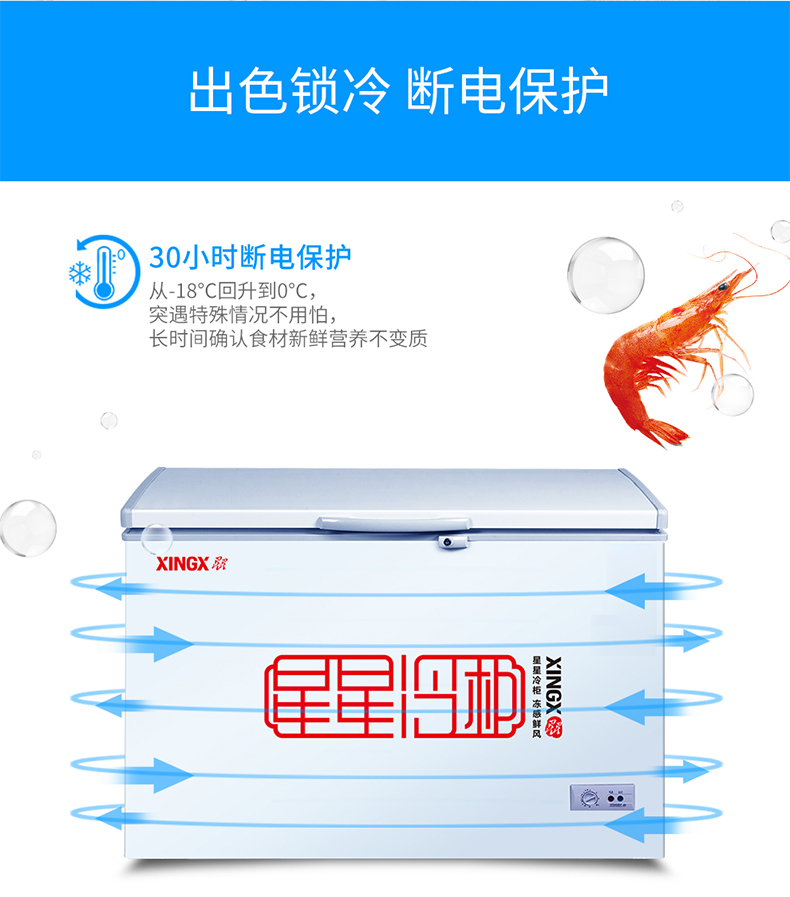 XINGX/星星的商用冰柜星星355L商用家用冷冻冷藏转换单温冷柜,BD/BC-355E