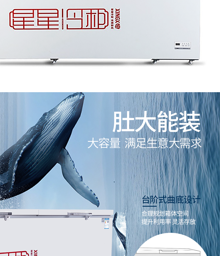 XINGX/星星的商用冰柜星星518L商用卧式冷冻冷藏转换柜,BD/BC-518ND,-40℃深冷速冻,低温保鲜
