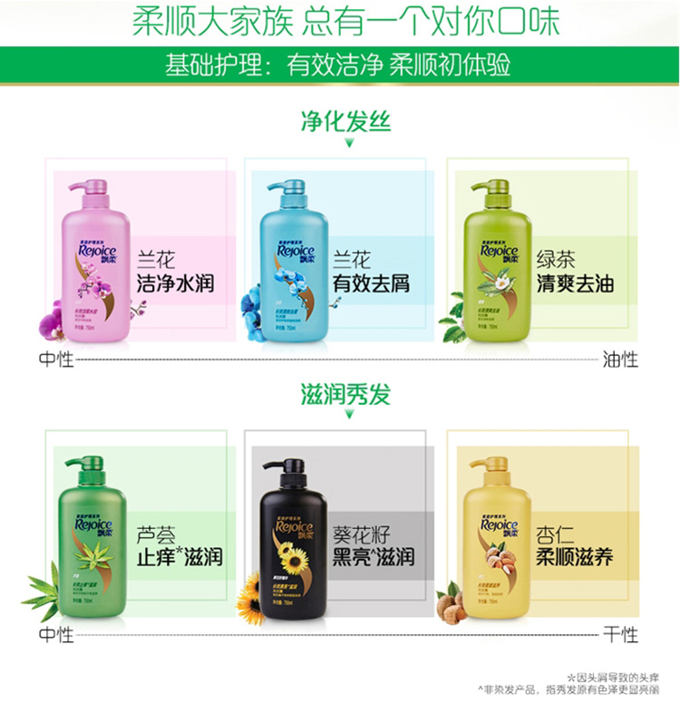 REJOICE/飘柔的洗发沐浴飘柔家庭护理兰花长效洁顺水润洗发露,750ml单位:瓶