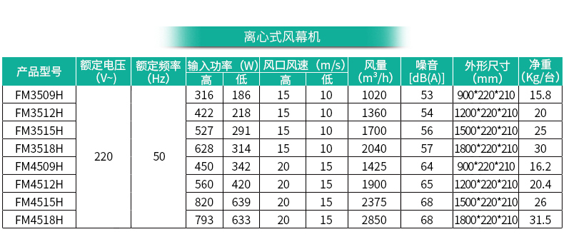 绿岛风 工业型离心式风幕机,FM-1512L-8-G1,380V。不含安装 |
