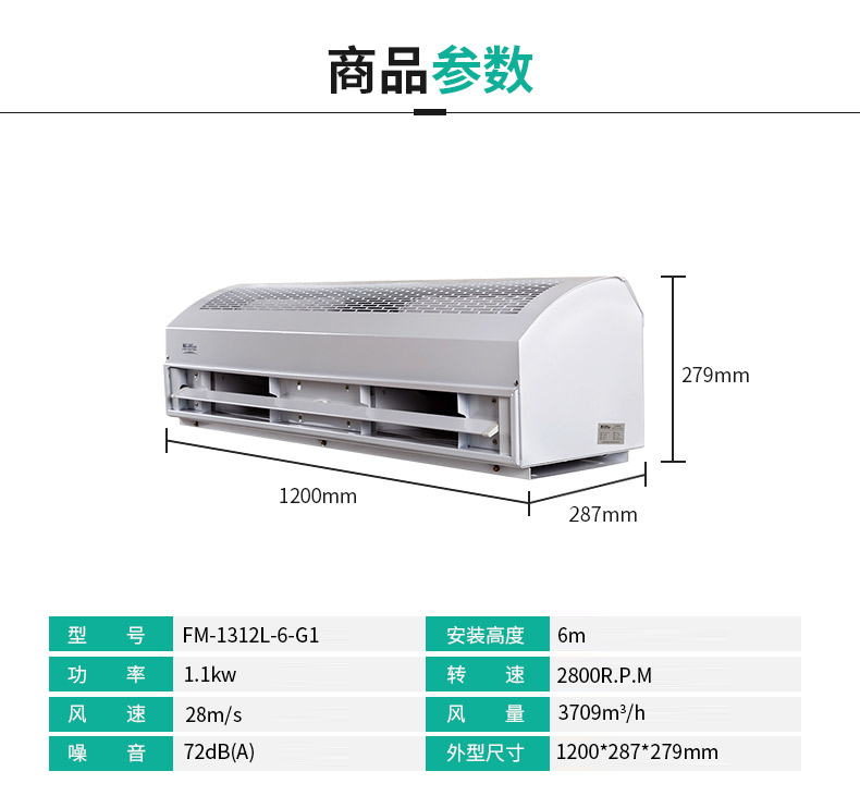 绿岛风 工业型离心式风幕机,FM-1515L-8-G1,380V,1.5米,安装高度8米。不含安装 |