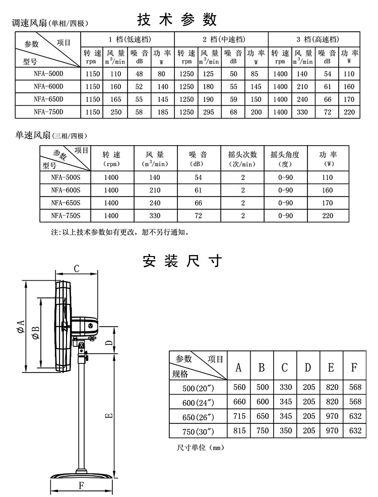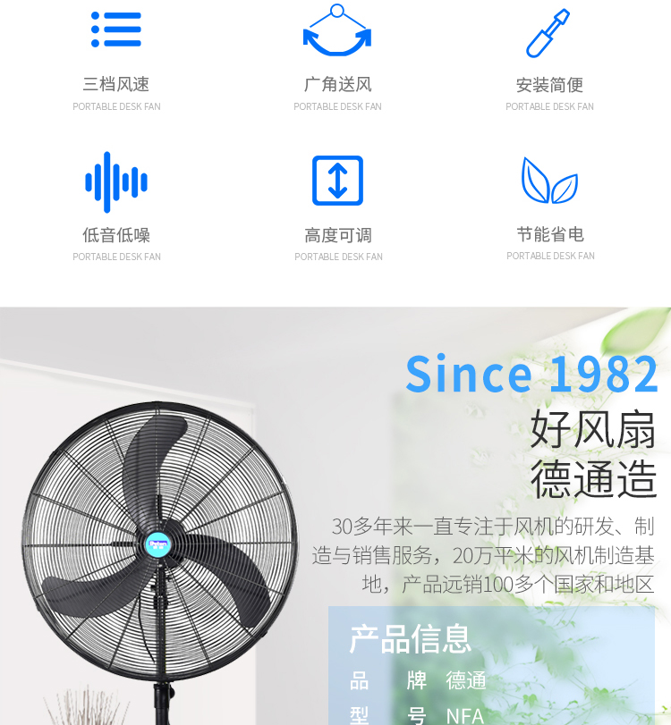 德通 高效变频强力风扇(升降落地式) NFE-750D,220V,5档调速,28/48/78/125/180W |