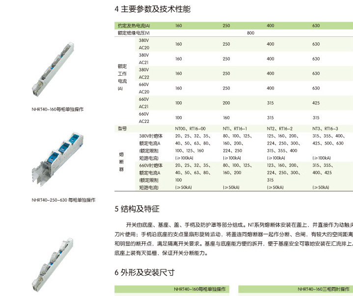 正泰CHINT NHRT40系列熔断器式隔离开关,NHRT40-630/3N |