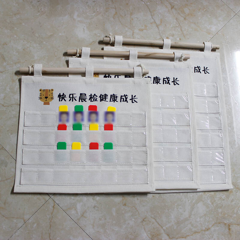庄太太【晨检快乐40格双层透明袋】晨检卡签到牌插片晨检牌晨检布袋塑料收纳盒ZTT-9340B |